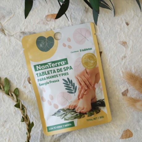 Tabletas efervescentes para manos y pies, con té verde y menta.