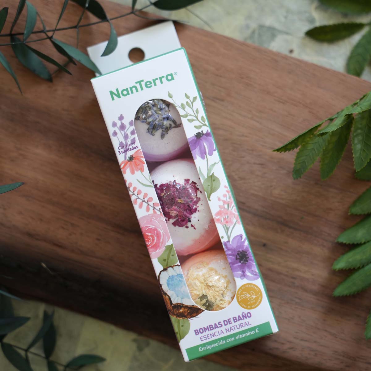 Kit de 3 bombas de baño enriquecida con vitamina E y naturales pétalos de flores.