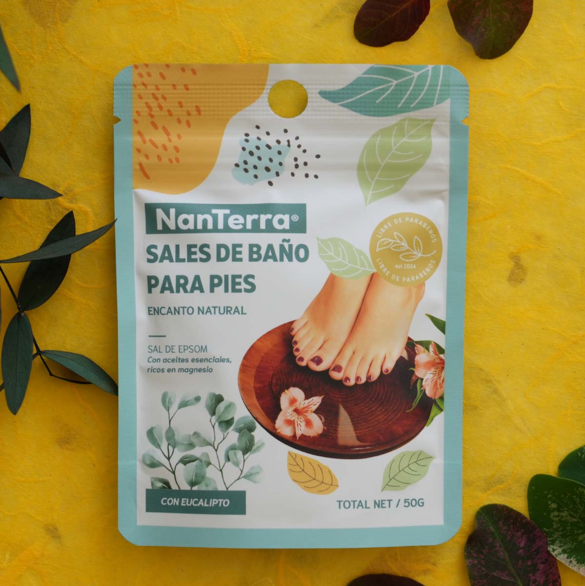 Sales de baño para pies con eucalipto.